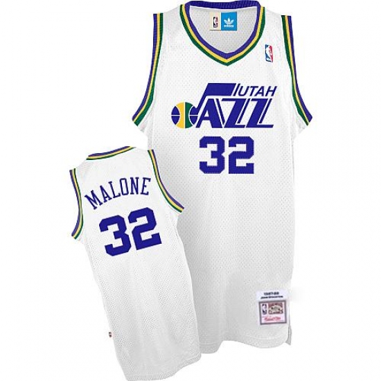 Home>NBA>Utah Jazz>Karl Malone>Men's Adidas Utah Jazz #32 Karl Malone Authentic White Throwback NBA Jersey