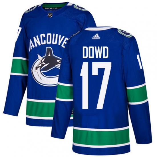 >Men's Adidas Vancouver Canucks #17 Nic Dowd Authentic Blue Home NHL Jersey