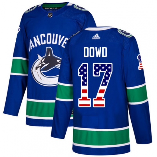 >Men's Adidas Vancouver Canucks #17 Nic Dowd Authentic Blue USA Flag Fashion NHL Jersey