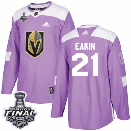 Men's Adidas Vegas Golden Knights #21 Cody Eakin Authentic Purple Fights Cancer Practice 2018 Stanley Cup Final NHL Jersey