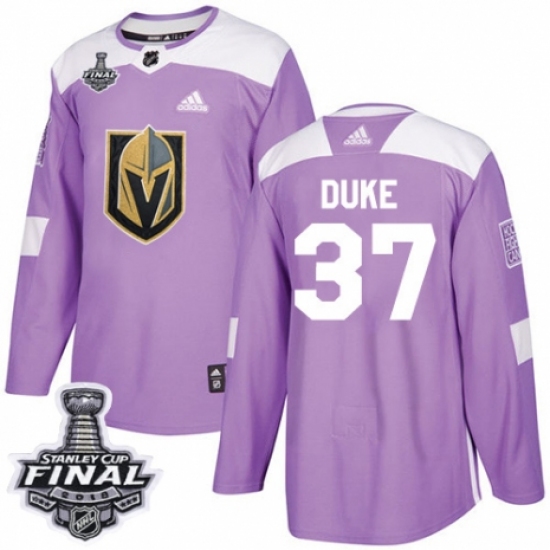Men's Adidas Vegas Golden Knights #37 Reid Duke Authentic Purple Fights Cancer Practice 2018 Stanley Cup Final NHL Jersey
