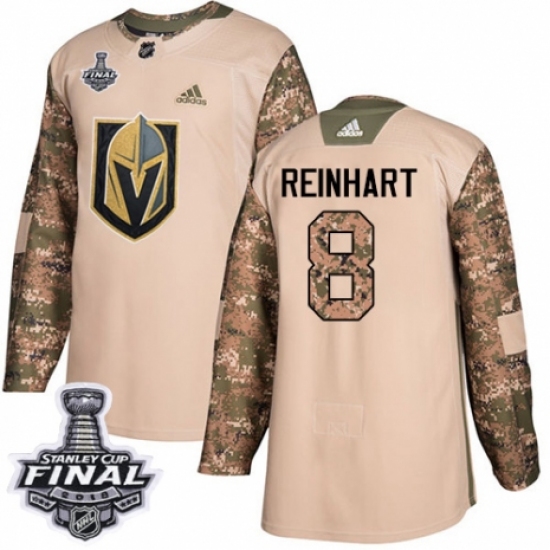 >Men's Adidas Vegas Golden Knights #8 Griffin Reinhart Authentic Camo Veterans Day Practice 2018 Stanley Cup Final NHL Jersey