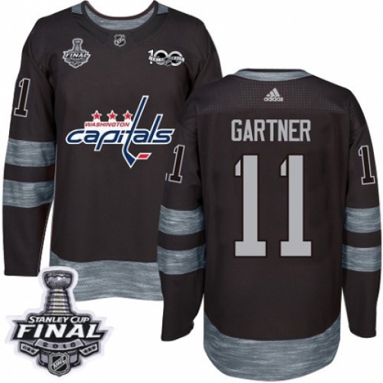 Men's Adidas Washington Capitals #11 Mike Gartner Authentic Black 1917-2017 100th Anniversary 2018 Stanley Cup Final NHL Jersey