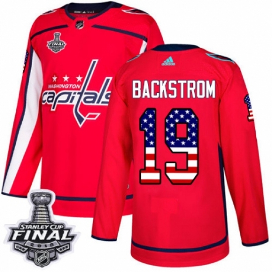 Men's Adidas Washington Capitals #19 Nicklas Backstrom Authentic Red USA Flag Fashion 2018 Stanley Cup Final NHL Jersey