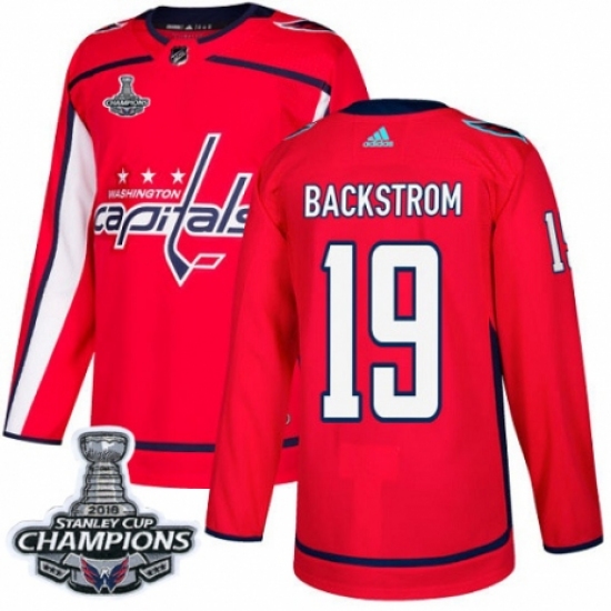 Men's Adidas Washington Capitals #19 Nicklas Backstrom Premier Red Home 2018 Stanley Cup Final Champions NHL Jersey