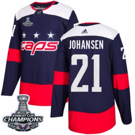 Men's Adidas Washington Capitals #21 Lucas Johansen Authentic Navy Blue 2018 Stadium Series 2018 Stanley Cup Final Champions NHL Jersey