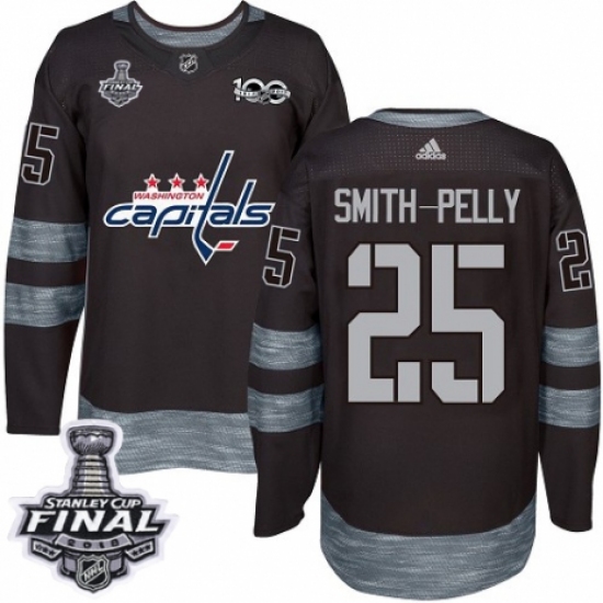 Men's Adidas Washington Capitals #25 Devante Smith-Pelly Authentic Black 1917-2017 100th Anniversary 2018 Stanley Cup Final NHL Jersey