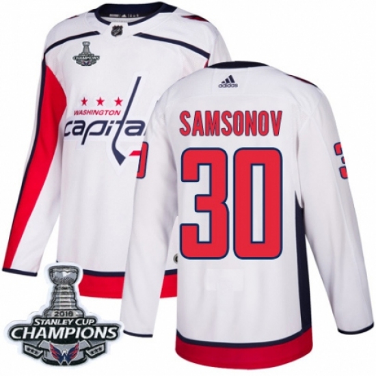 Men's Adidas Washington Capitals #30 Ilya Samsonov Authentic White Away 2018 Stanley Cup Final Champions NHL Jersey