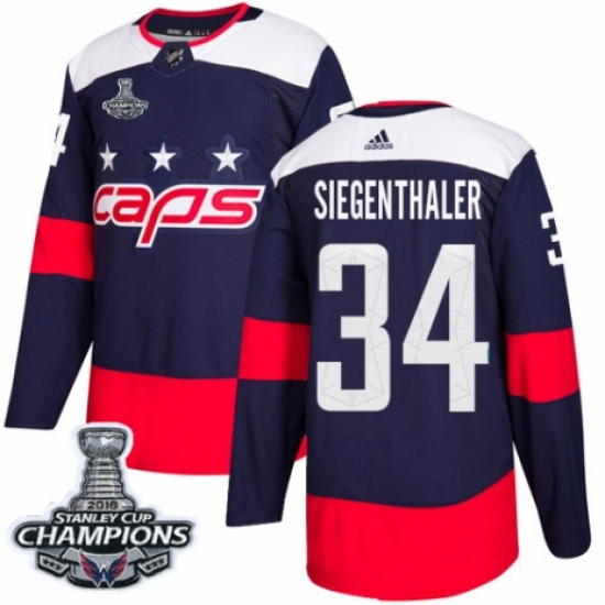Men's Adidas Washington Capitals #34 Jonas Siegenthaler Authentic Navy Blue 2018 Stadium Series 2018 Stanley Cup Final Champions NHL Jersey