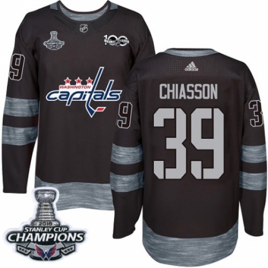 Men's Adidas Washington Capitals #39 Alex Chiasson Authentic Black 1917-2017 100th Anniversary 2018 Stanley Cup Final Champions NHL Jersey