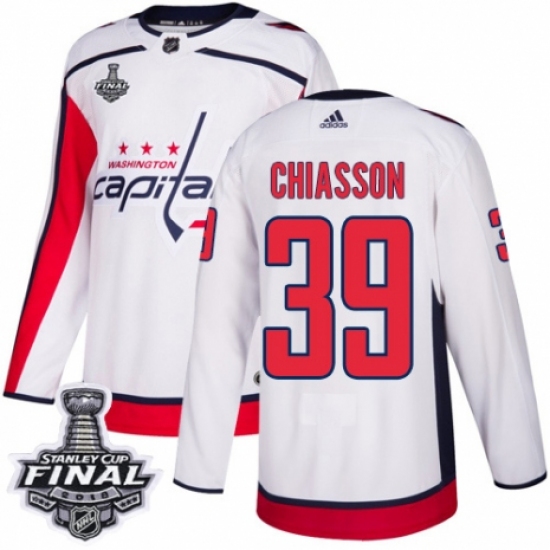 Men's Adidas Washington Capitals #39 Alex Chiasson Authentic White Away 2018 Stanley Cup Final NHL Jersey