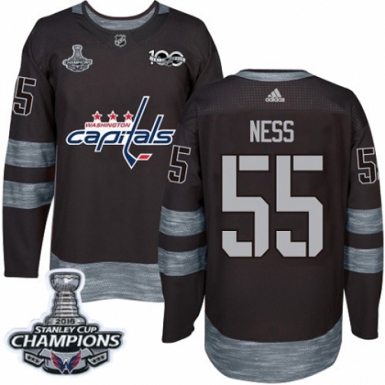 Men's Adidas Washington Capitals #55 Aaron Ness Authentic Black 1917-2017 100th Anniversary 2018 Stanley Cup Final Champions NHL Jersey