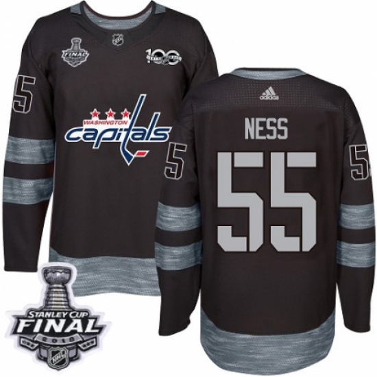 >Men's Adidas Washington Capitals #55 Aaron Ness Authentic Black 1917-2017 100th Anniversary 2018 Stanley Cup Final NHL Jersey