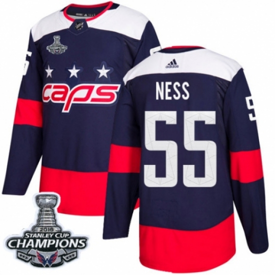 Men's Adidas Washington Capitals #55 Aaron Ness Authentic Navy Blue 2018 Stadium Series 2018 Stanley Cup Final Champions NHL Jersey