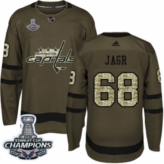 Men's Adidas Washington Capitals #68 Jaromir Jagr Authentic Green Salute to Service 2018 Stanley Cup Final Champions NHL Jersey