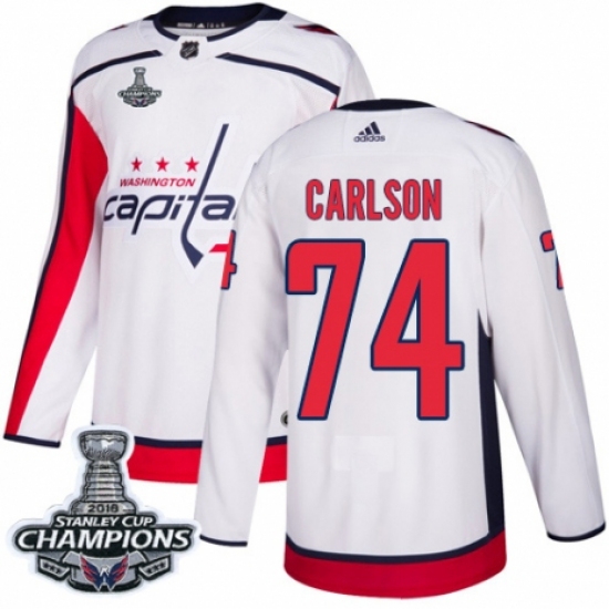 Men's Adidas Washington Capitals #74 John Carlson Authentic White Away 2018 Stanley Cup Final Champions NHL Jersey