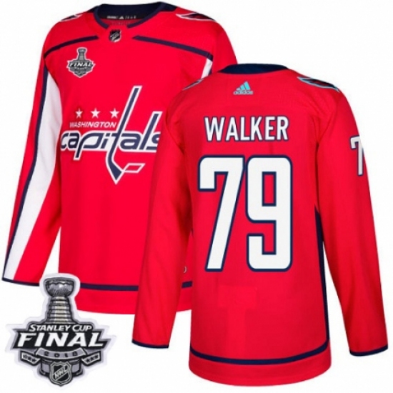 Men's Adidas Washington Capitals #79 Nathan Walker Authentic Red Home 2018 Stanley Cup Final NHL Jersey