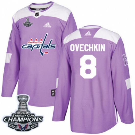 >Men's Adidas Washington Capitals #8 Alex Ovechkin Authentic Purple Fights Cancer Practice 2018 Stanley Cup Final Champions NHL Jersey