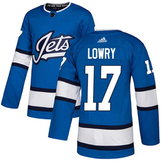 >Men's Adidas Winnipeg Jets #17 Adam Lowry Authentic Blue Alternate NHL Jersey