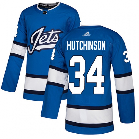 >Men's Adidas Winnipeg Jets #34 Michael Hutchinson Authentic Blue Alternate NHL Jersey