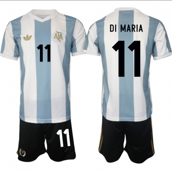 Men's Argentina #11 ángel Fabián Di María White Blue 2024-25 50th Anniversary Home Soccer Jersey Suit
