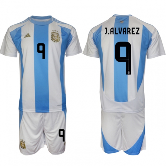>Men's Argentina #9 Gabriel Batistuta White Blue 2024-25 Home Soccer Jersey Suit