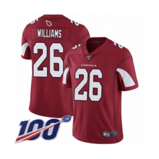 >Men's Arizona Cardinals #26 Brandon Williams Red Team Color Vapor Untouchable Limited Player 100th Season Football Jersey