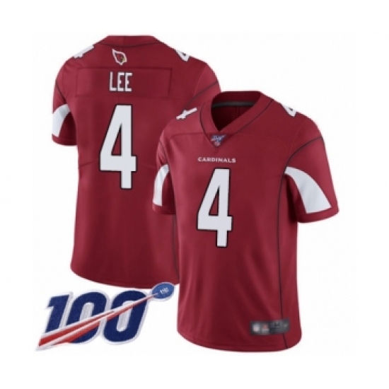 Men's Arizona Cardinals #4 Andy Lee Red Team Color Vapor Untouchable Limited Player 100th Season Football Jersey