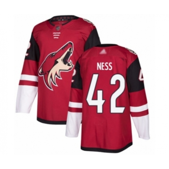 >Men's Arizona Coyotes #42 Aaron Ness Authentic Burgundy Red Home Hockey Jersey