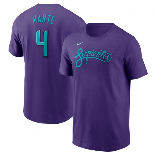 Home>T-Shirts>MLB T-Shirts>Arizona Diamondbacks>Men's Arizona Diamondbacks #4 Ketel Marte Purple 2025 City Connect Name & Number T-Shirt