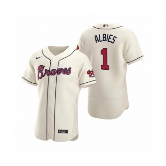 Men's Atlanta Braves #1 Ozzie Albies Nike Cream Authentic 2020 Alternate Jersey