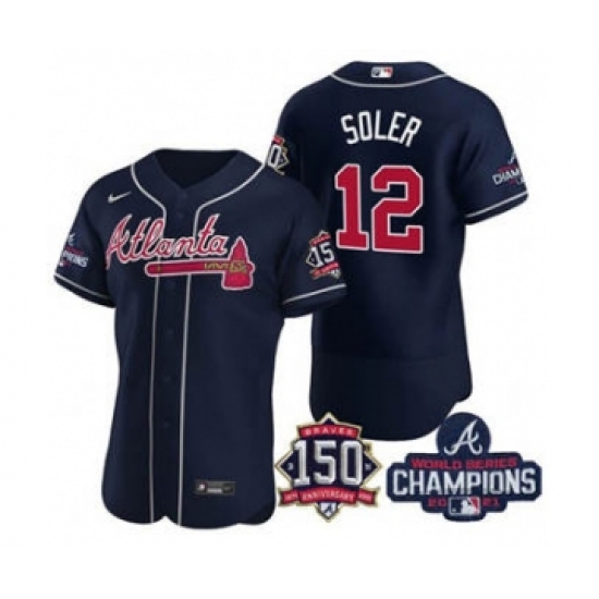 Men's Atlanta Braves #12 Jorge Soler 2021 Navy World Series Champions With 150th Anniversary Flex Base Stitched Jersey