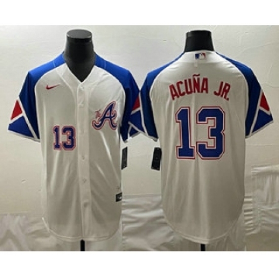 Men's Atlanta Braves #13 Ronald Acuña Jr. White 2023 City Connect Cool Base Stitched Baseball Jersey