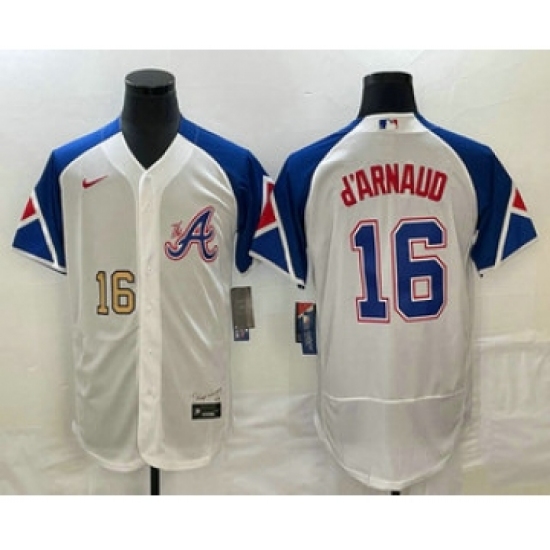 Men's Atlanta Braves #16 Travis dArnaud White 2023 City Connect Flex Base Stitched Jersey