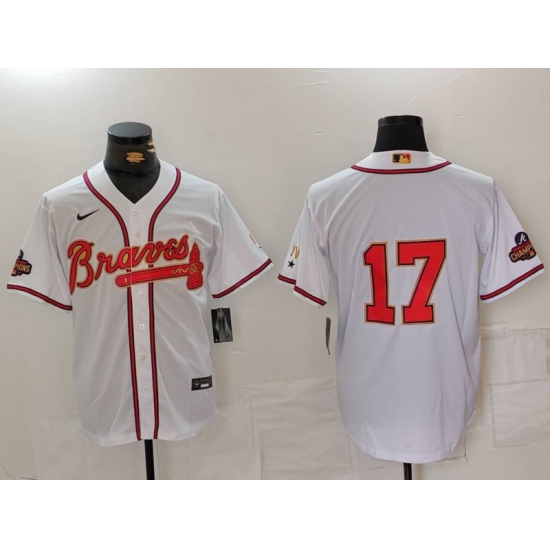Men's Atlanta Braves #17 Andy Messersmith White Gold World Series Champions Cool Base Stitched Jersey
