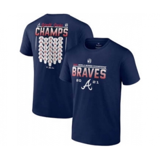 >Men's Atlanta Braves 2021 Navy World Series Champions Jersey Roster T-Shirt