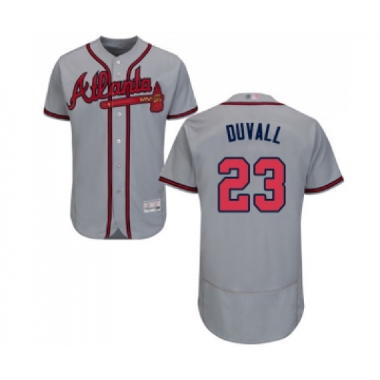 Men's Atlanta Braves #23 Adam Duvall Grey Road Flex Base Authentic Collection Baseball Jersey