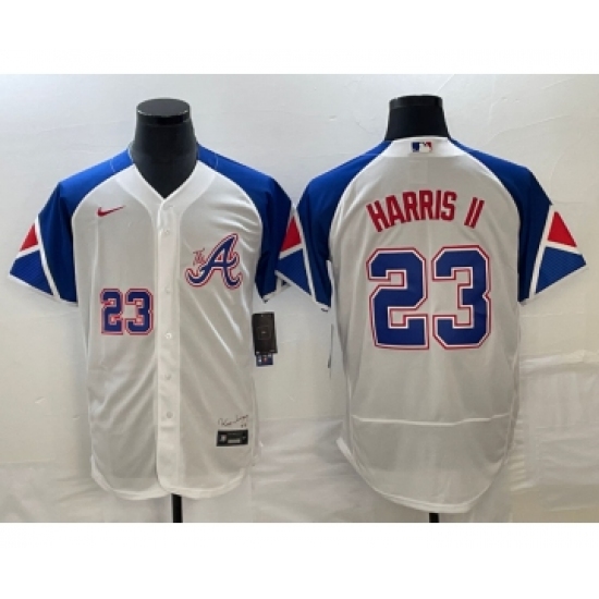 >Men's Atlanta Braves #23 Michael Harris II Number White 2023 City Connect Flex Base Stitched Baseball Jersey1