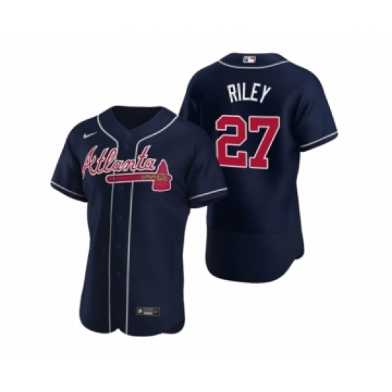 >Men's Atlanta Braves #27 Austin Riley Nike Navy Authentic 2020 Alternate Jerseys