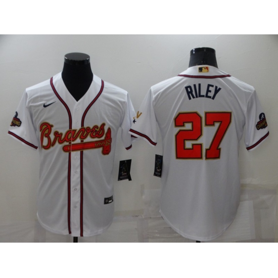 Men's Atlanta Braves #27 Austin Riley Nike White 2022 Gold Program Authentic Player Jersey