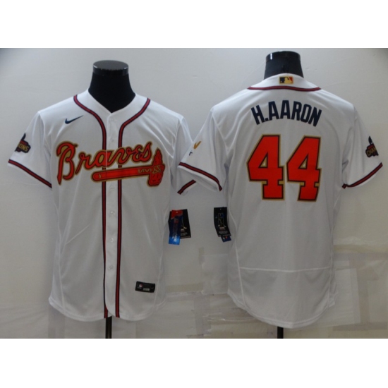 Men's Majestic Atlanta Braves #44 Hank Aaron White Home Flex Base Authentic Collection MLB Jersey