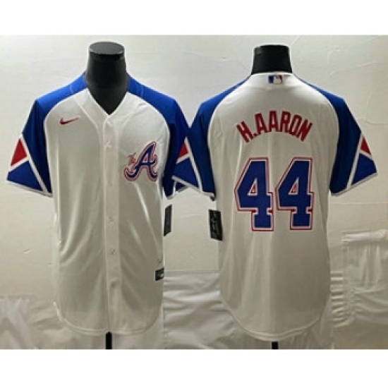 Men's Atlanta Braves #44 Hank Aaron White 2023 City Connect Cool Base Stitched Jersey