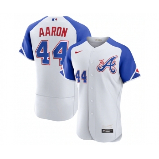 Men's Atlanta Braves #44 Hank Aaron White 2023 City Connect Flex Base Stitched Jersey