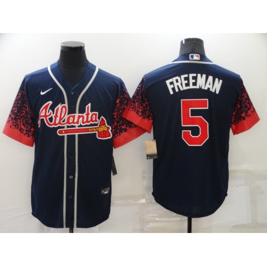 Men's Atlanta Braves #5 Freddie Freeman 2021 City Connect Navy Cool Base Stitched Baseball Jersey