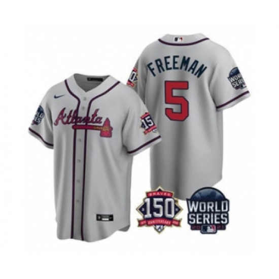 Men's Atlanta Braves #5 Freddie Freeman 2021 Gray World Series With 150th Anniversary Patch Cool Base Baseball Jersey