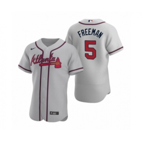 >Men's Atlanta Braves #5 Freddie Freeman Nike Gray Authentic 2020 Road Jersey