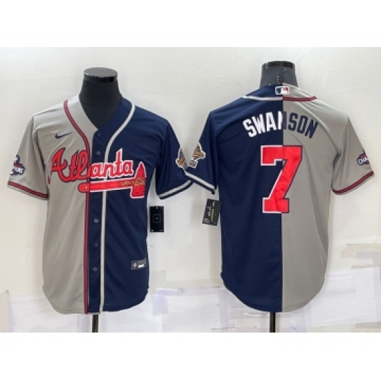 Men's Atlanta Braves #7 Dansby Swanson Grey Navy Blue Two Tone Stitched Nike Jersey