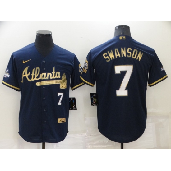 >Men's Atlanta Braves #7 Dansby Swanson Navy 2022 Gold Program Authentic Player Jersey