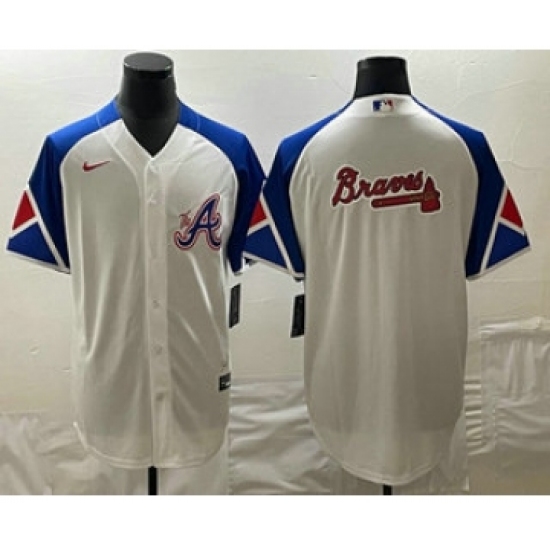 >Men's Atlanta Braves Big Logo White 2023 City Connect Cool Base Stitched Jersey