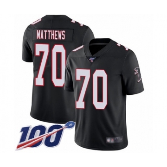 >Men's Atlanta Falcons #70 Jake Matthews Black Alternate Vapor Untouchable Limited Player 100th Season Football Jersey
